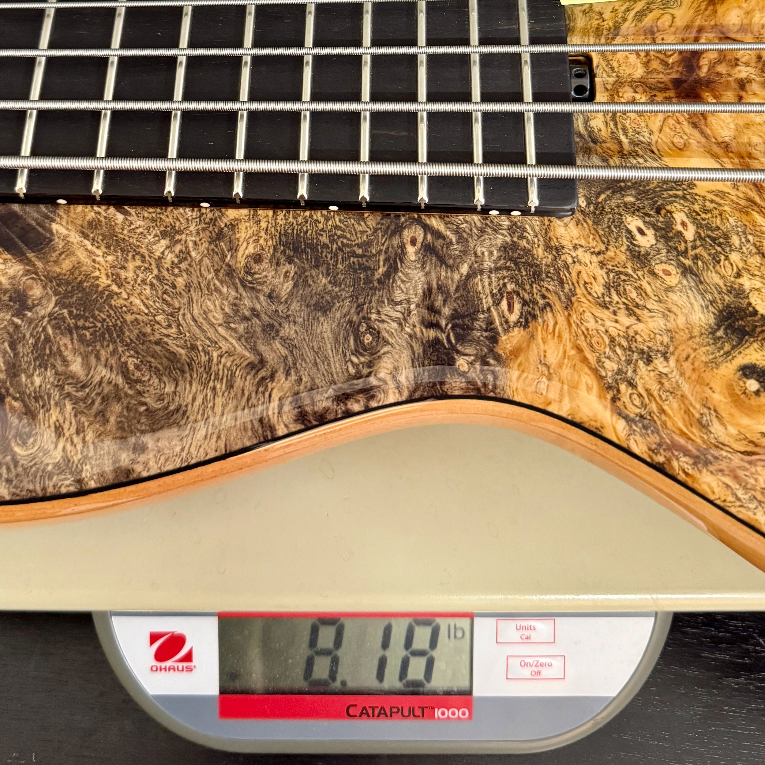 | Body | Chambered Swamp Ash w/ Master Grade Buckeye Burl Top |
